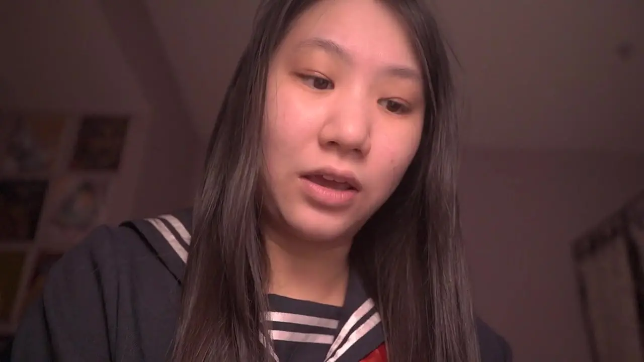 Curious Japanese schoolgirl sits at her desk, reading a book while softly speaking into the camera. She alternates between reading and touching her thighs, creating a calming ASMR experience. As she becomes more aroused, she reveals her desire to have her teacher's attention.