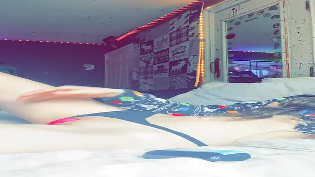 Petite Asian girl plays with her pussy while boyfriend is in another room