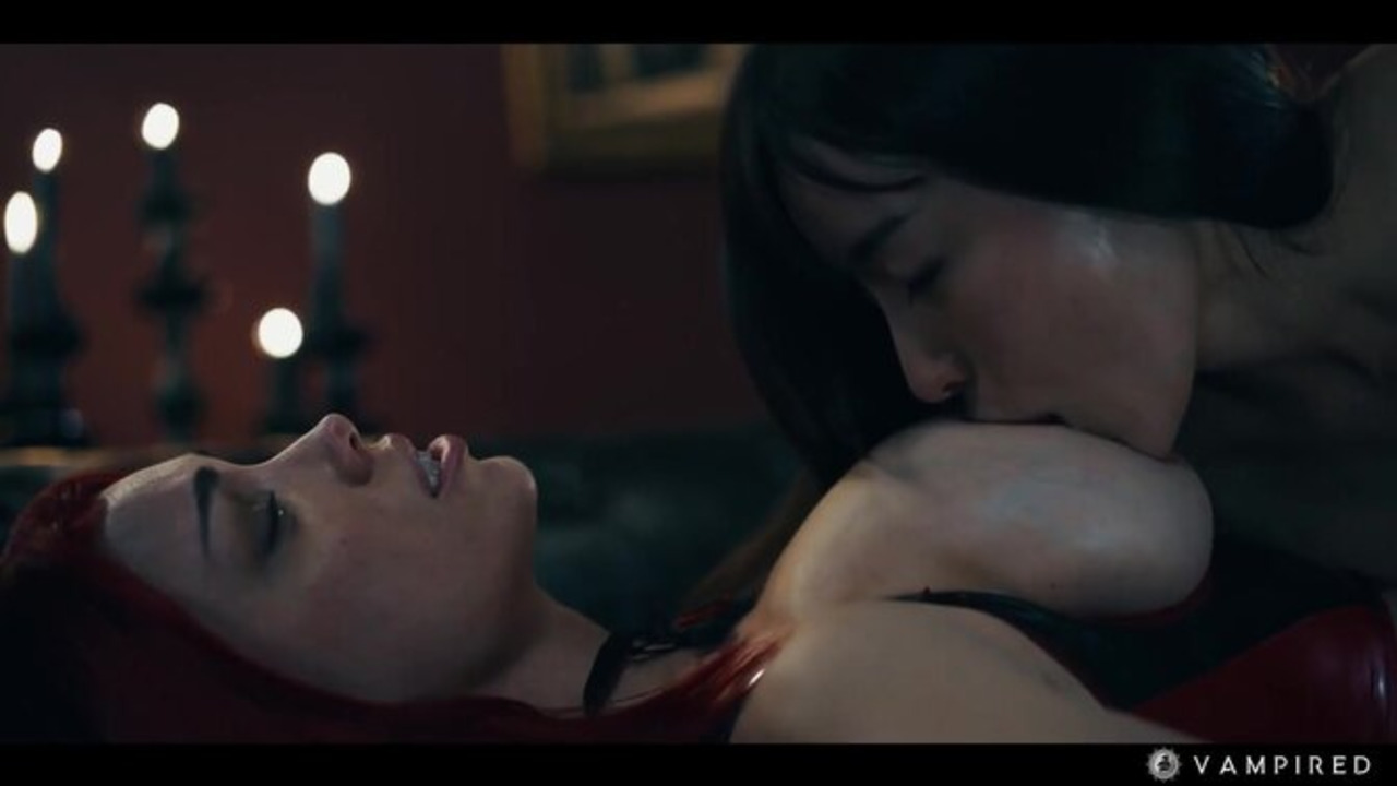 Cosplaying as Bloodrayne, an Asian vampire mistress, two babes engage in